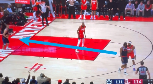巴图姆发球!此时快船已经没有暂停了,哈登指挥队友去接球!